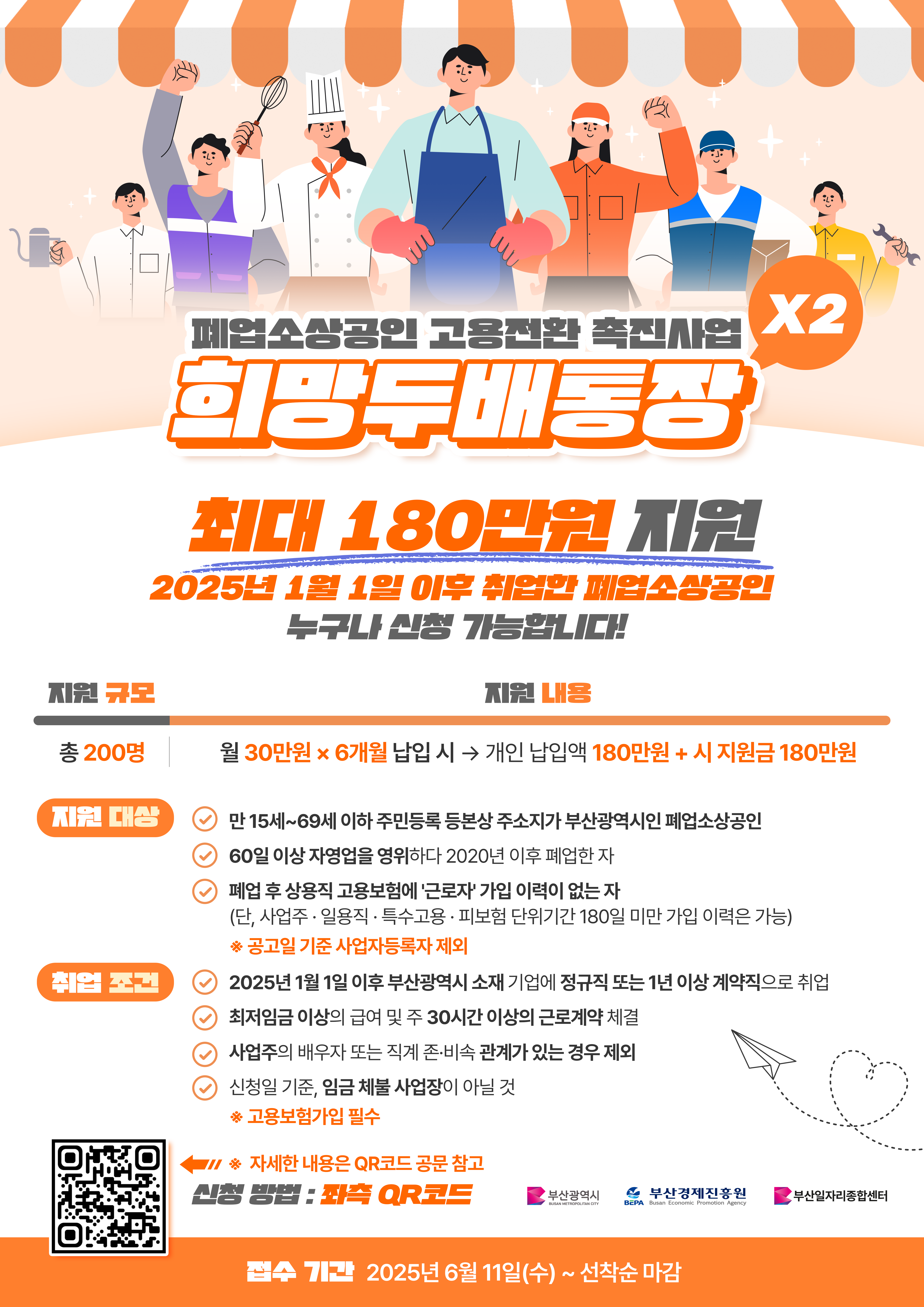 부산지역에 취업한 폐업소상공인에게 희망두배통장을 지원해드립니다.
