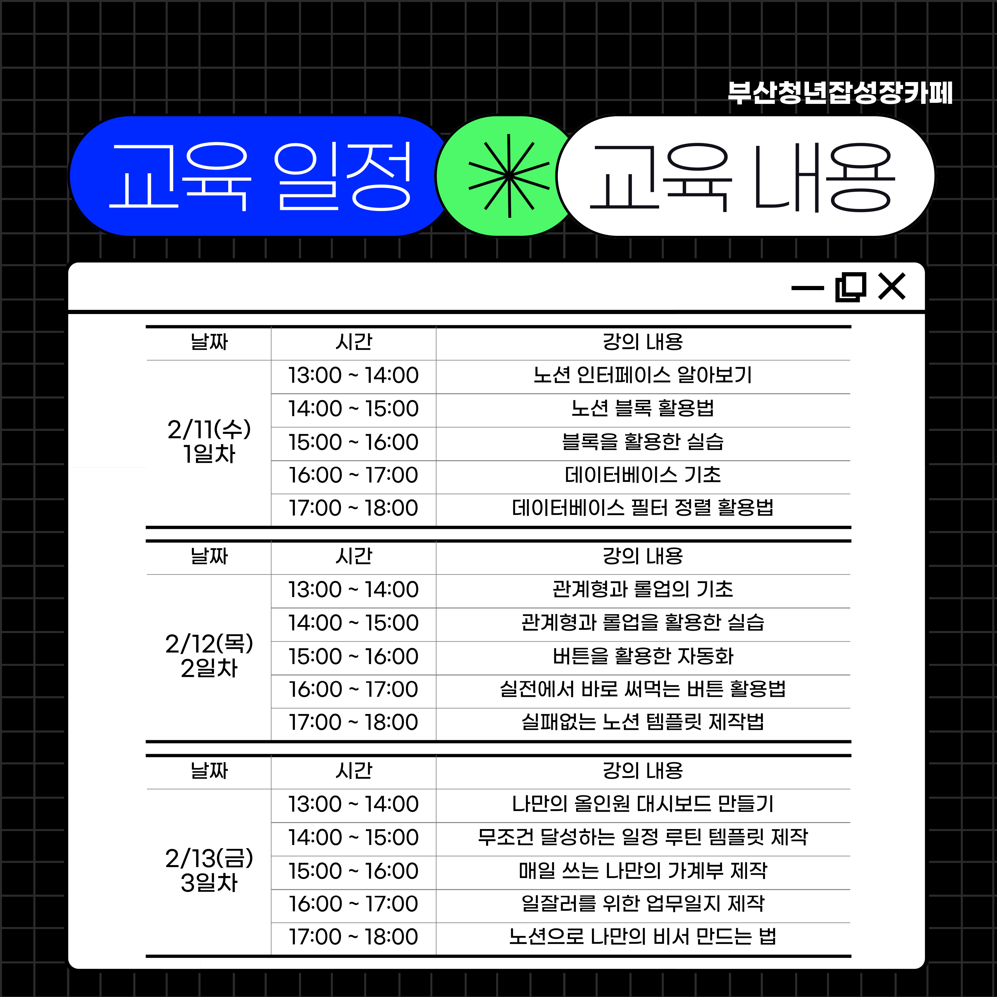 ■ 일시 : 26. 02. 11. (수)~26. 02. 13. (금) 13:00~18:00 (1일 5h x 3일, 총 15시간 과정)