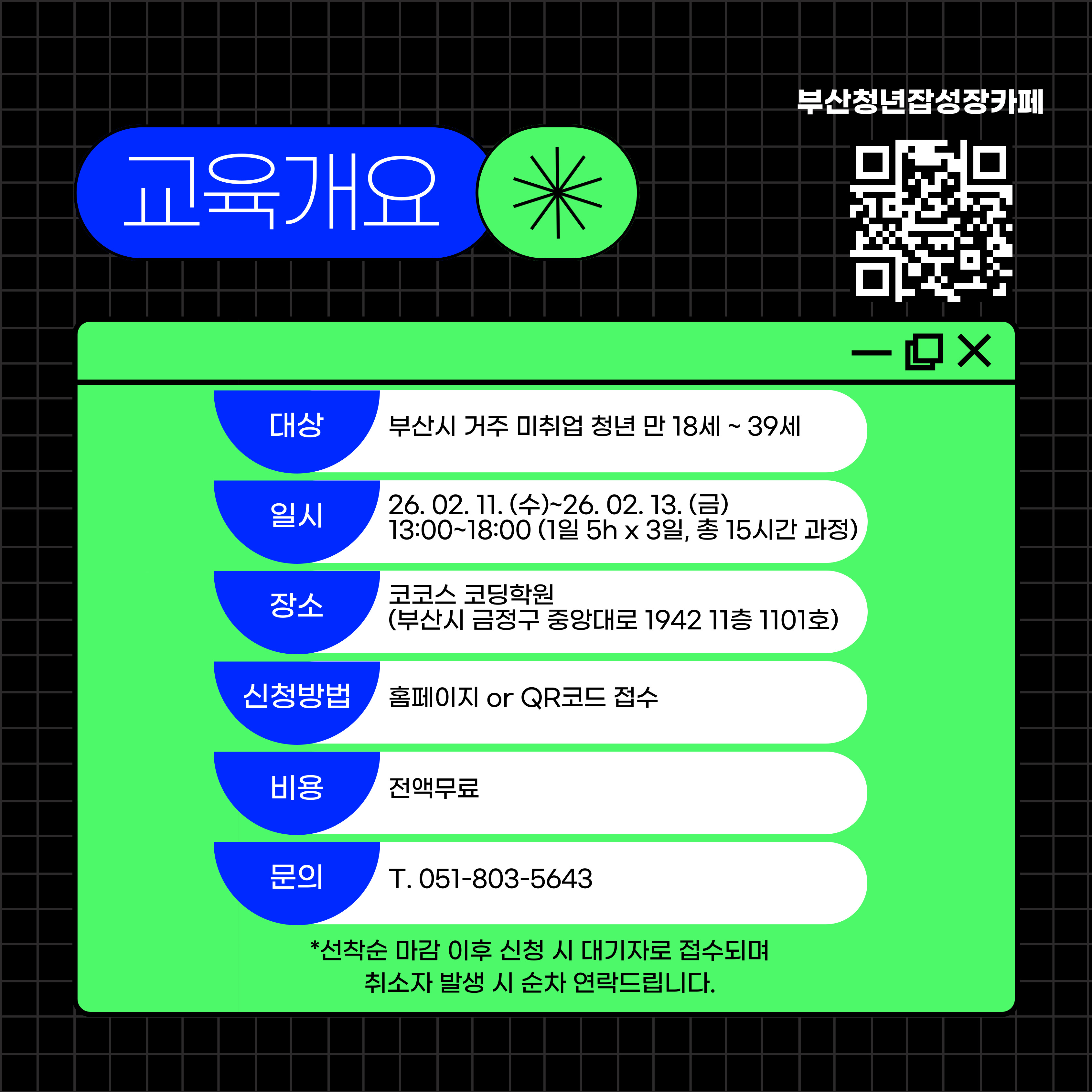 ■ 장소 : 코코스 코딩학원(부산광역시 금정구 중앙대로 1942 11층 1101호)
