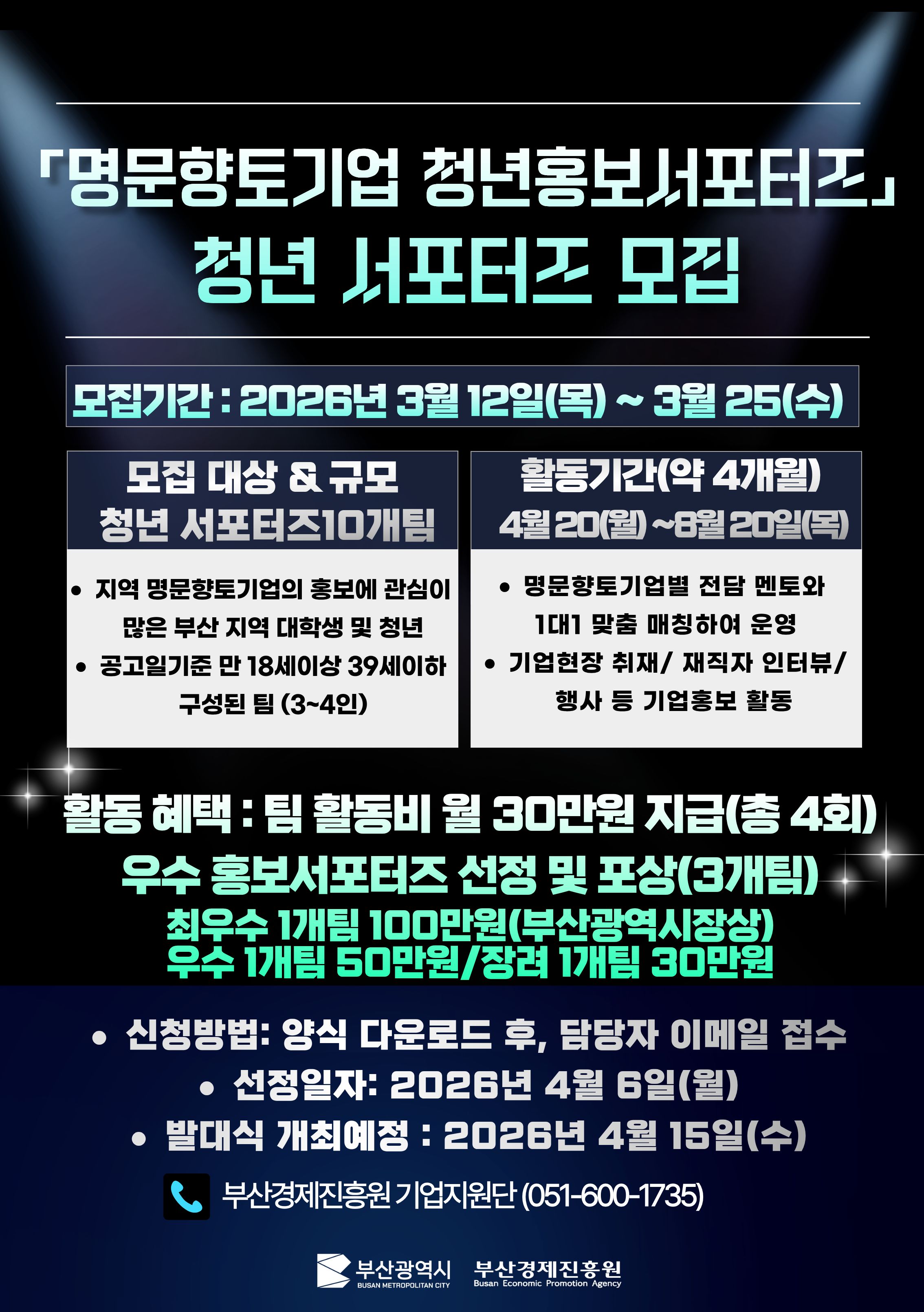□ 사 업 명 : 2026 부산명문향토기업 청년 홍보 서포터즈 운영사업