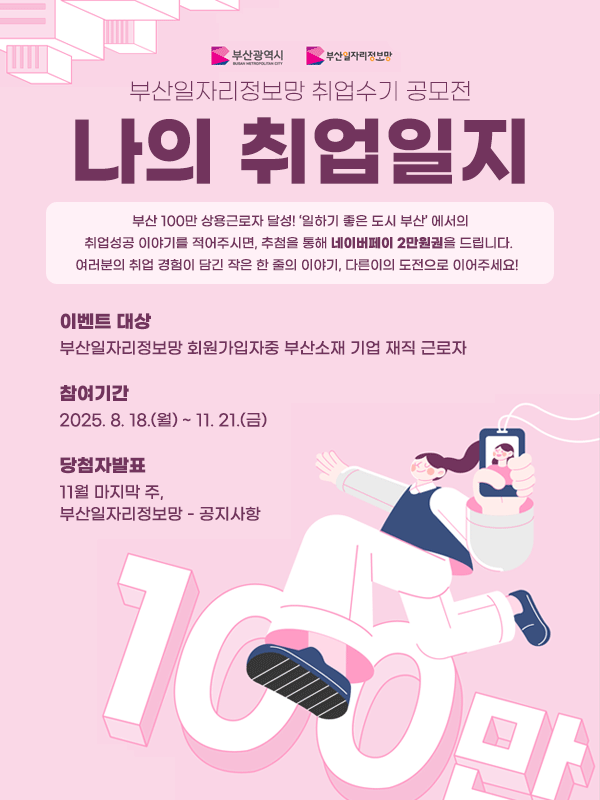 참여해주셔서 감사드리며, 선정을 축하드립니다! 🩷🩷🩷🩷🩷 부산의 모든 일자리, 부산일자리정보망😉