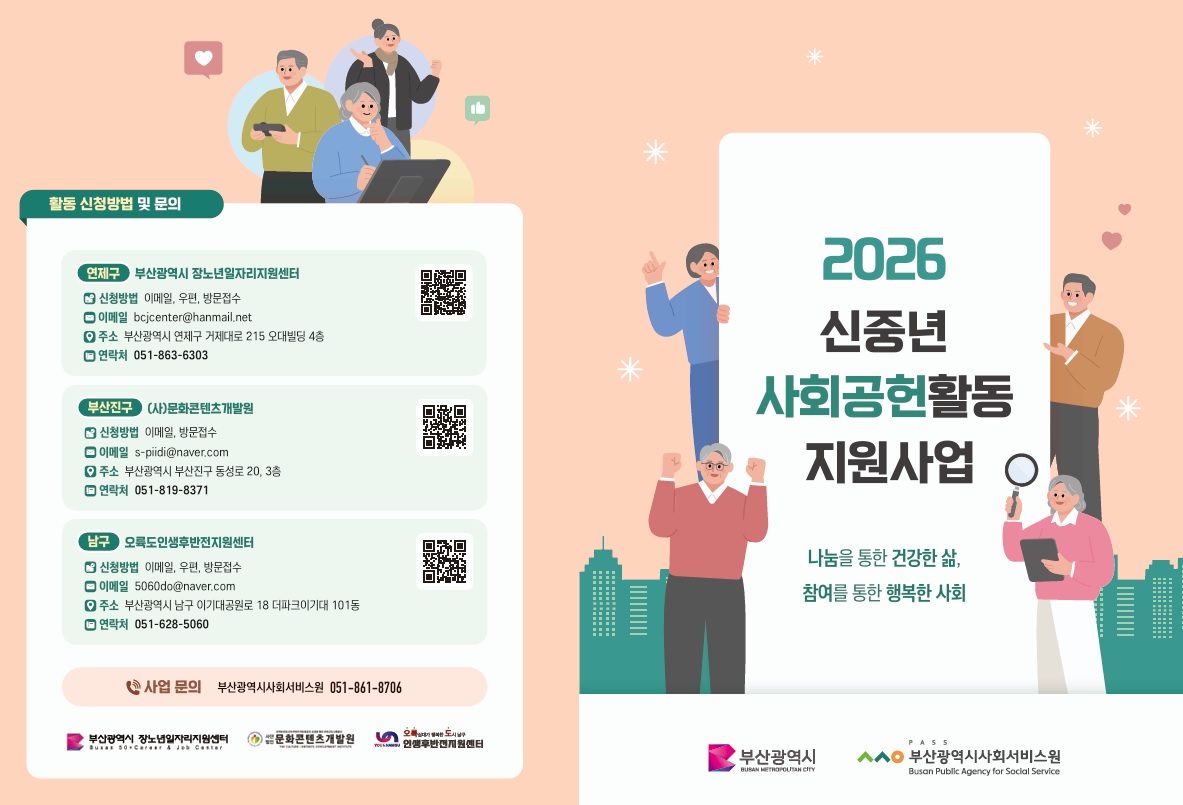 접수처: 부산광역시 장노년일자리지원센터, (사)문화콘텐츠개발원, 오륙도인생후반전지원센터 중 택 1