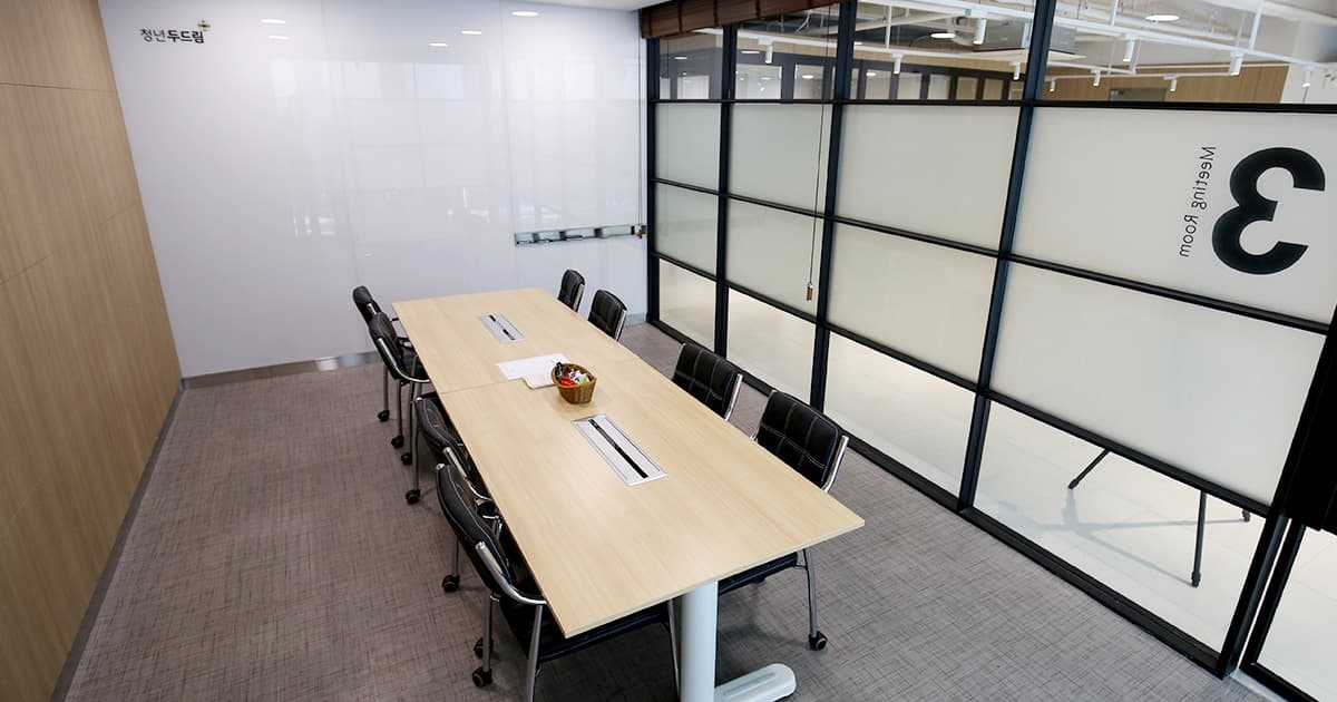 최대 수용인원이 10명까지 가능하며 스터디, 회의, 소모임 등에 적합한 공간입니다.