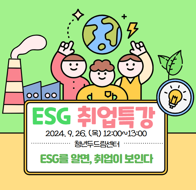 - 내 용 : ESG 및 ESG 경영의 이해, 관련 기업(직무) 및 취업준비 꿀팁, Q&A 등