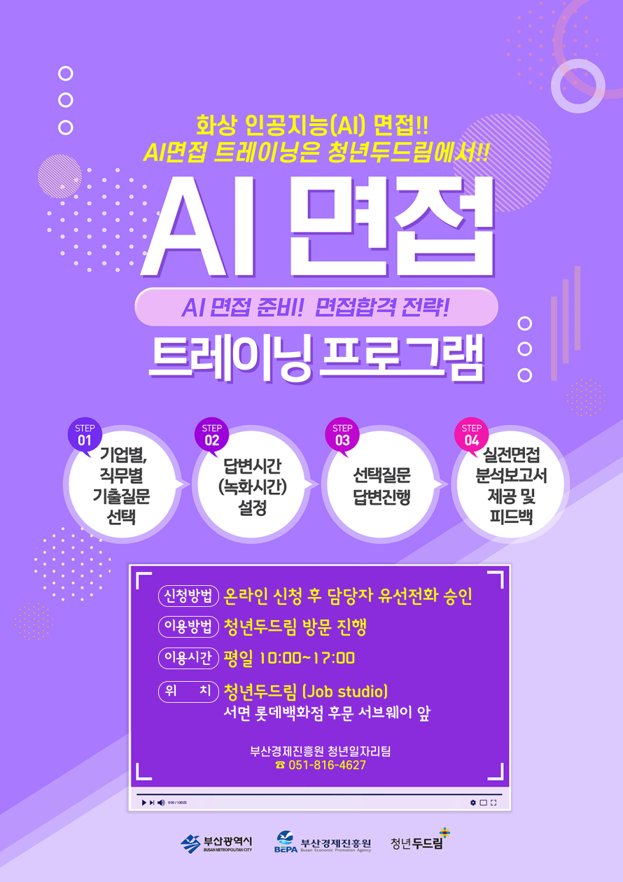 ※ 온라인 신청 > 담당자 승인문자 발송 > 신청한 시간에 맞추어 청년두드림센터 2층 (Job studio) 방문 진행