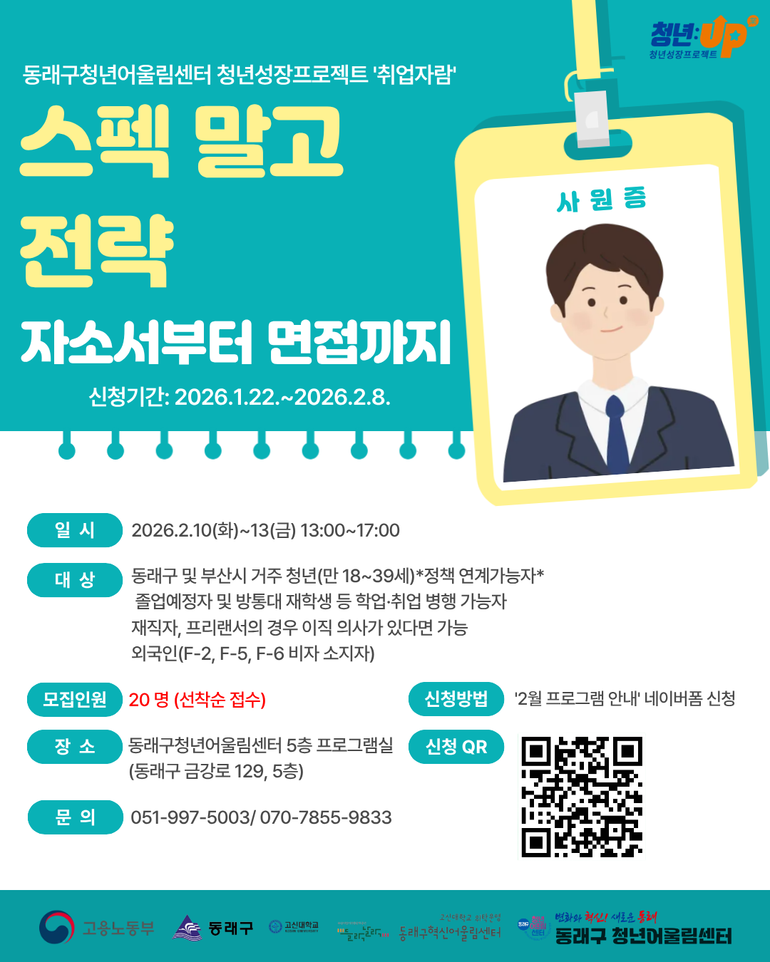 ■ 대상 : 동래구 및 부산시 거주 미취업 청년(만 18세 ~ 39세) *청년고용정책 연계 가능자