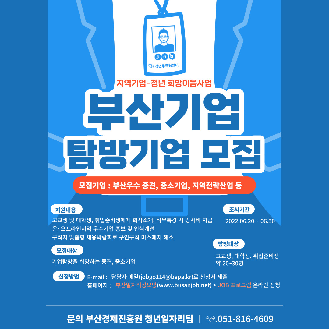 ■ 문 의 처 : 부산경제진흥원 청년일자리팀 안예진 매니저 /☏.051-816-4609)