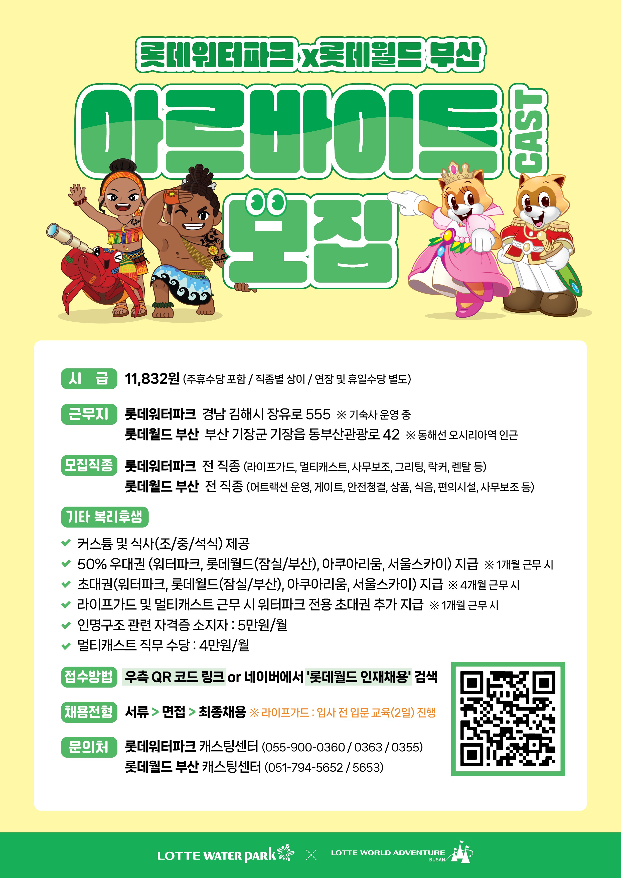 롯데워터파크×롯데월드 부산 아르바이트(CAST)모집